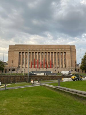 Climate activists from Finland and Sweden partially covered the façade of the Parliament House in Helsinki to protest against the…
