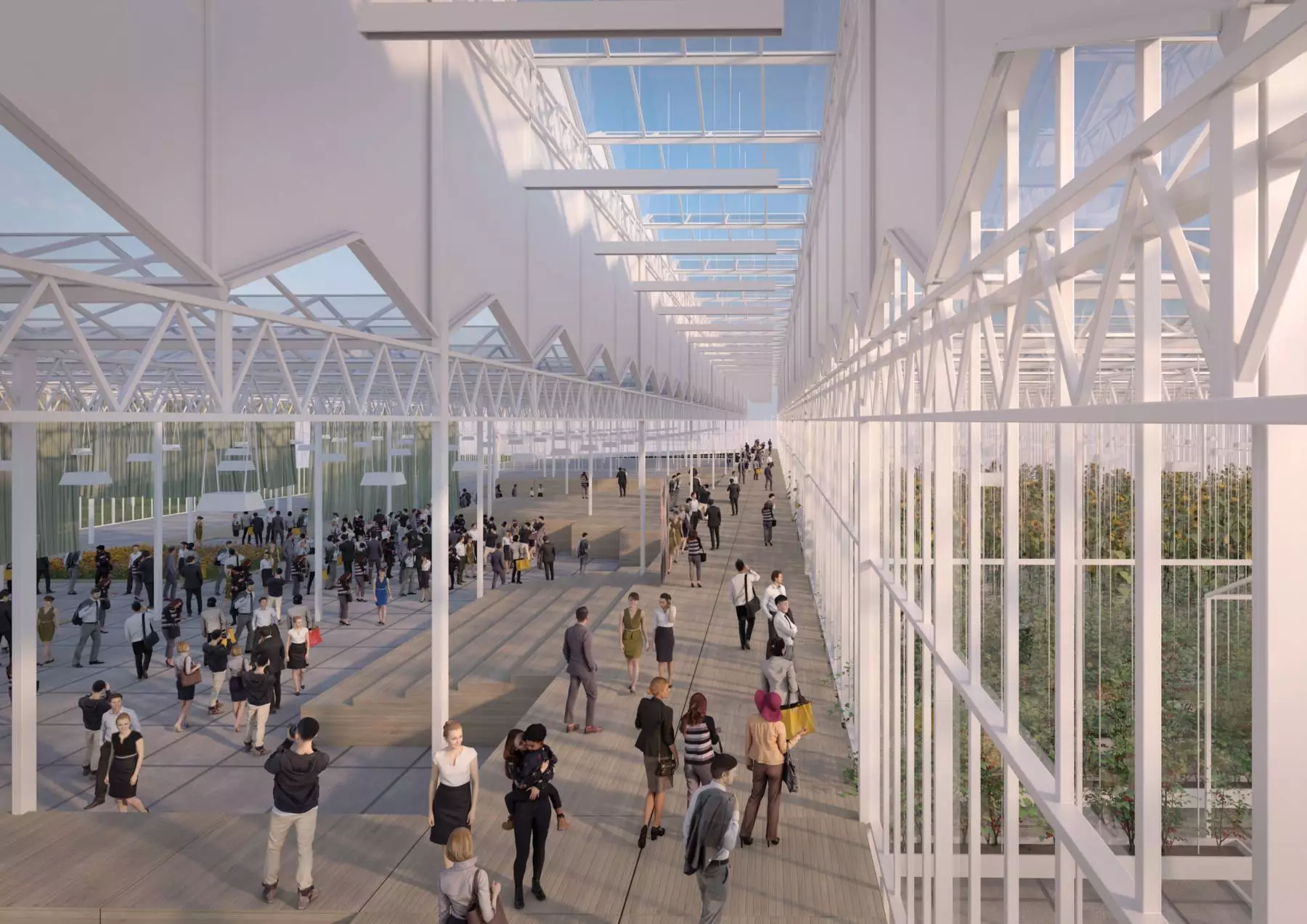The Floriade Greenhouses, which have a floor space of 10,000m2 is 170 metres long and includes five sections: a reception area, a hi-tech greenhouse, an experience greenhouse, a technology and innovation centre and a restaurant.