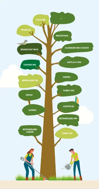 An example of a widely used biorational is the insecticide BotaniGard. The active ingredient in BotaniGard is a fungus. Knowledge of the product and how it works is essential for effective use. There are two formulations of the product that can be used in various crops to combat insects such as thrips, whiteflies, and root borers. BotaniGard Liquid is only recommended and utilised in Chrysanthemum cultivation. Due to crop safety, Botanigard WP (powder formulation) is recommended for other crops.