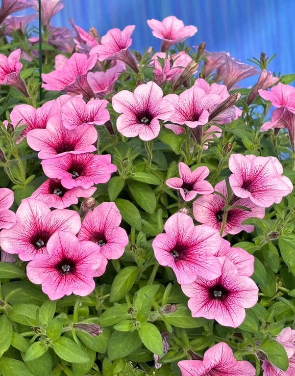 As if painted by a master artist’s brush, ‘Painted Love’ features a deep purple and soft pink star pattern that radiates from its centre to the petals edged with white. It is a plant of choice for adorning hanging baskets, gracing patio containers, or as a specimen spectacle.
